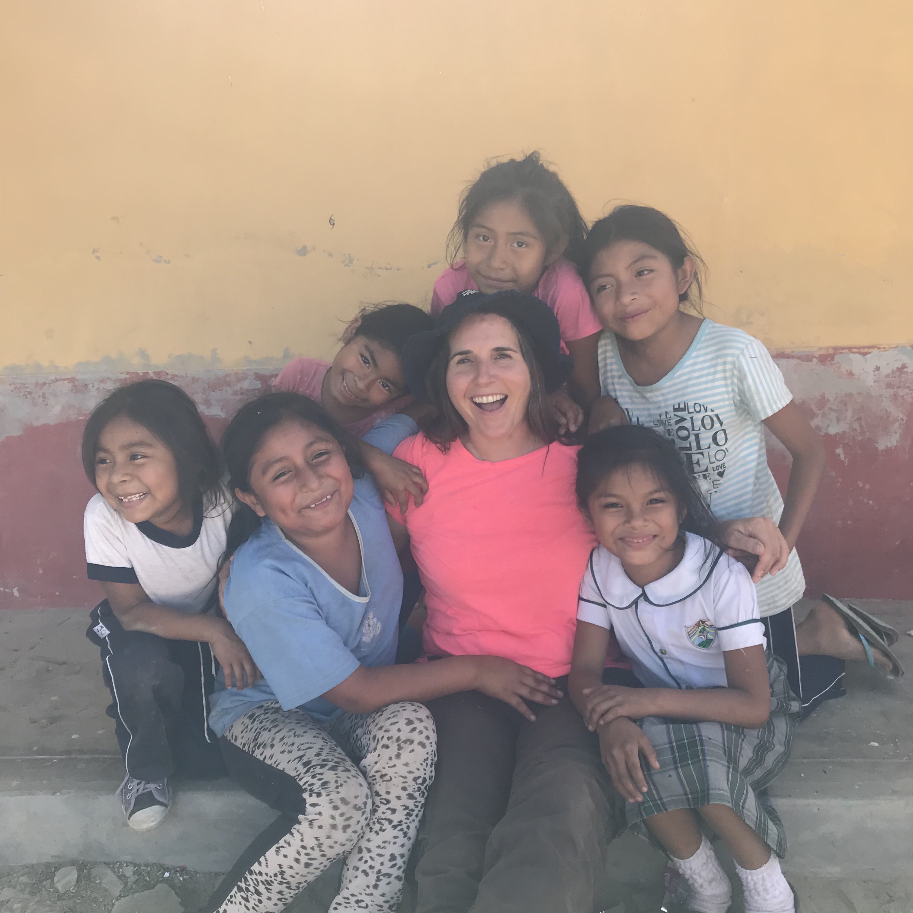 So I leave the lunch table and head on over to the kids I see. I sit down on the curb and before I know it the two or three is quickly multiplying. A small crowd of little girls are gathering around me. Immediately, I share the Spanish I know and then say “no más”. No more, that’s it. They seem to understand.
