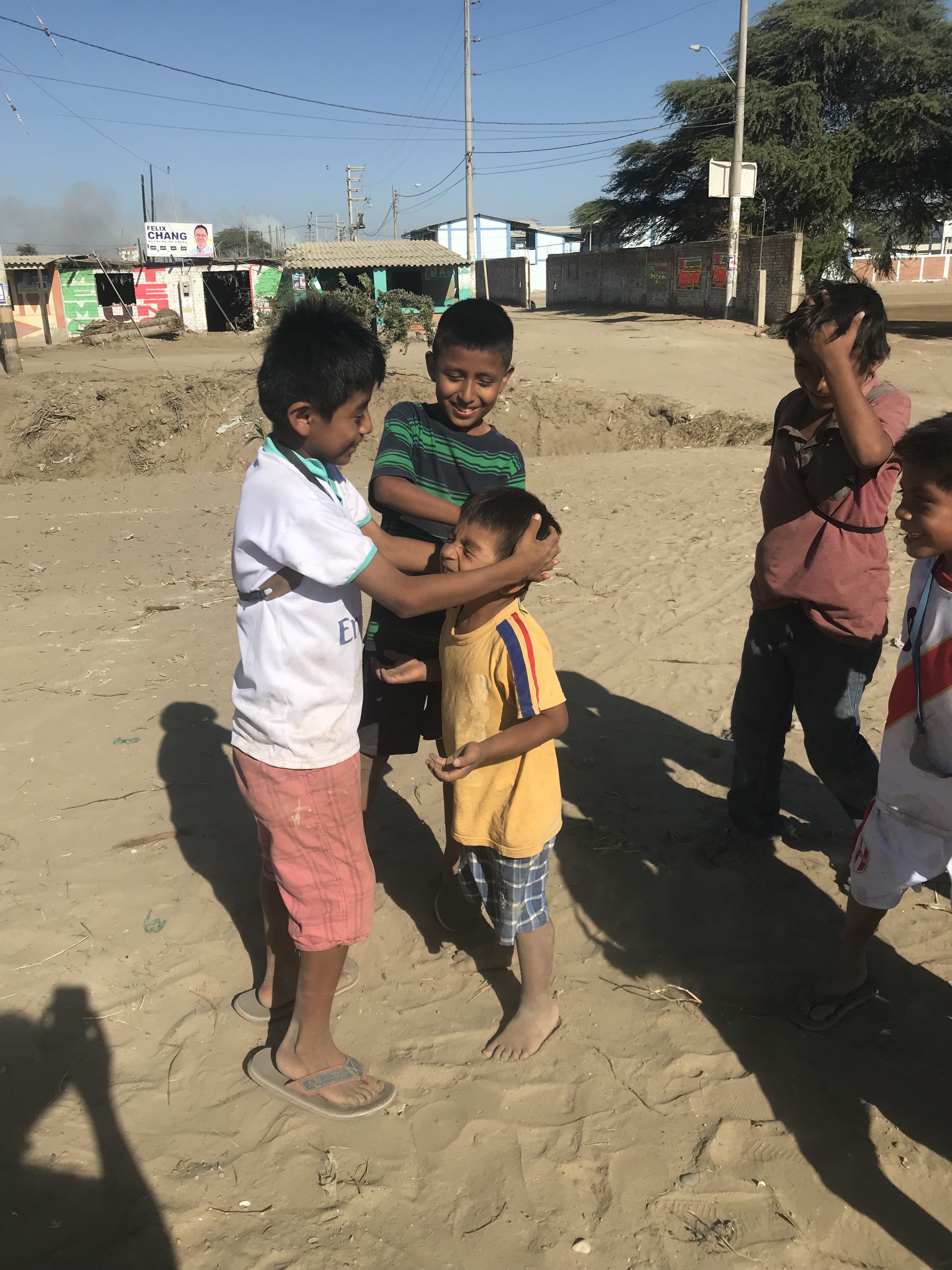 Now, I’m laughing out loud. I can barely control myself from smiling, as this was an unbelievable site see. By far the cutest thing I’ve ever seen in the sand in Peru! When he finally stops laughing. He has a smile on his face. He looks like a totally different boy. I touch my finger to his heart and I say, “Jesus te ama” and I see the hugest smile on his face. And I just hug him.